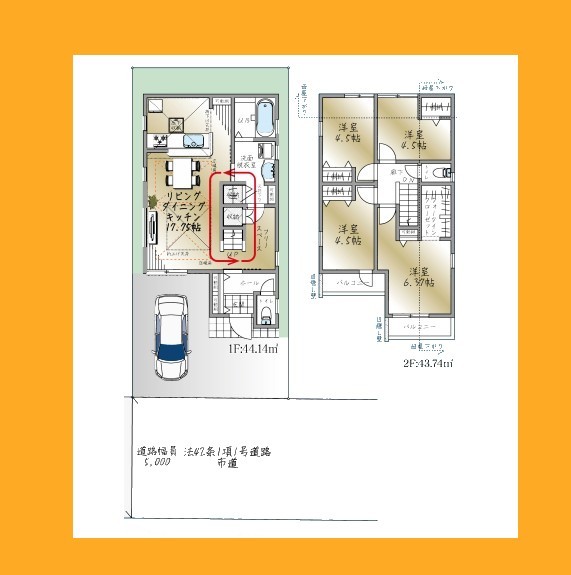 | 間取 | 4LDK (LDK17.75帖、洋室6.37帖、洋室4.5帖、洋室4.5帖、洋室4.5帖) | ||