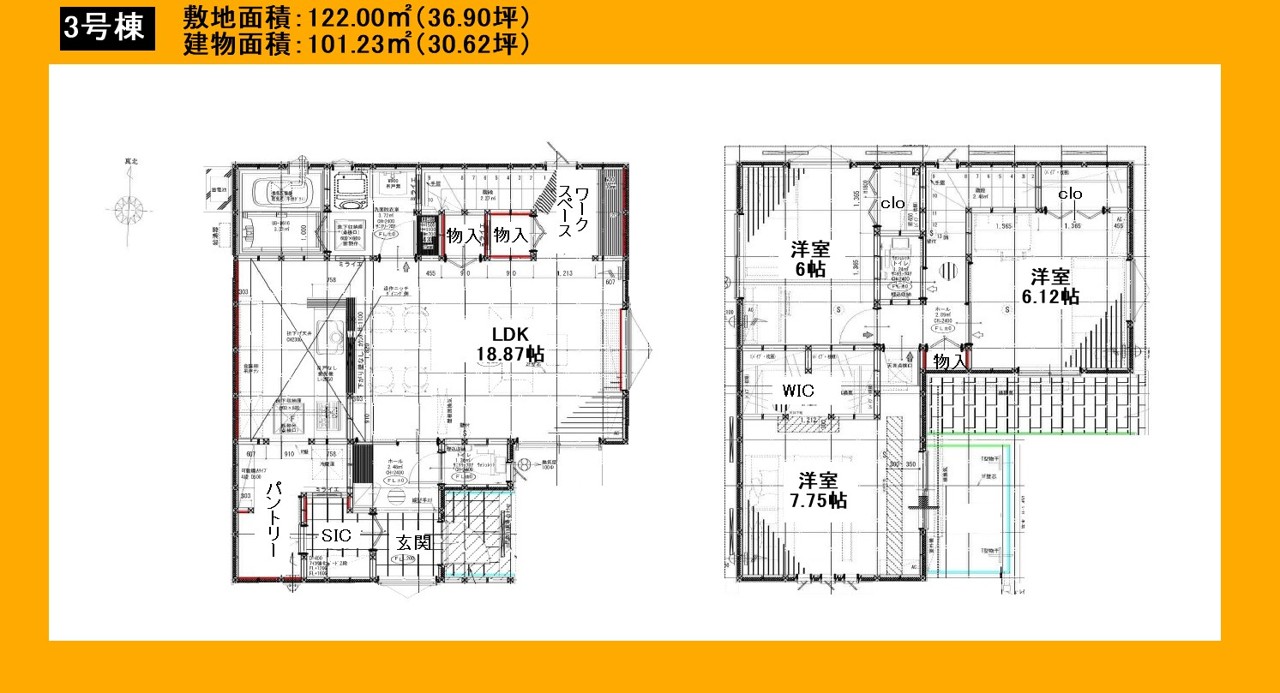 | 建物面積 | 101.22m² ~ 108.67m² | ||