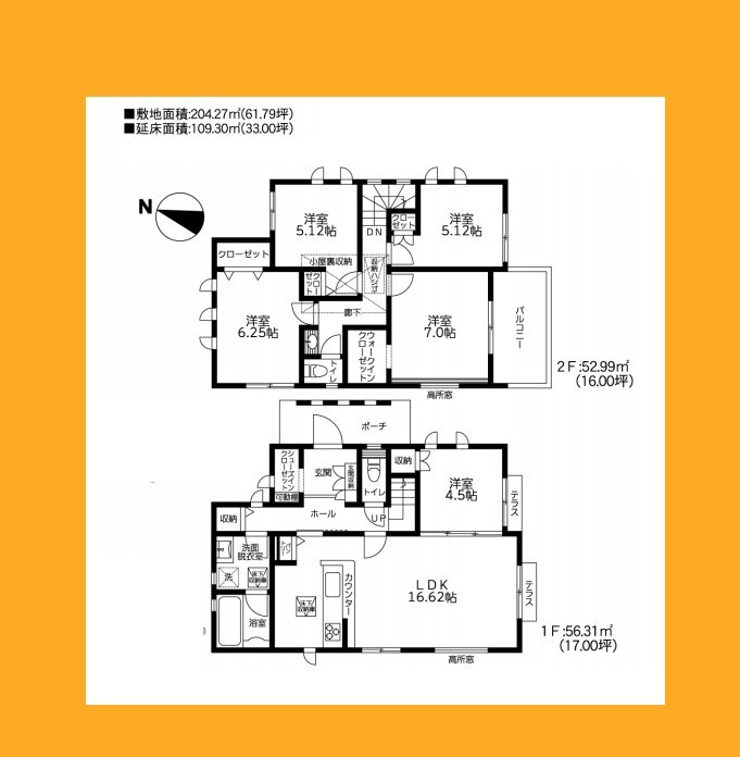 | 間取 | 5LDK (LDK16.62帖、洋室4.5帖、洋室7帖、洋室5.12帖、洋室6.25帖) | ||