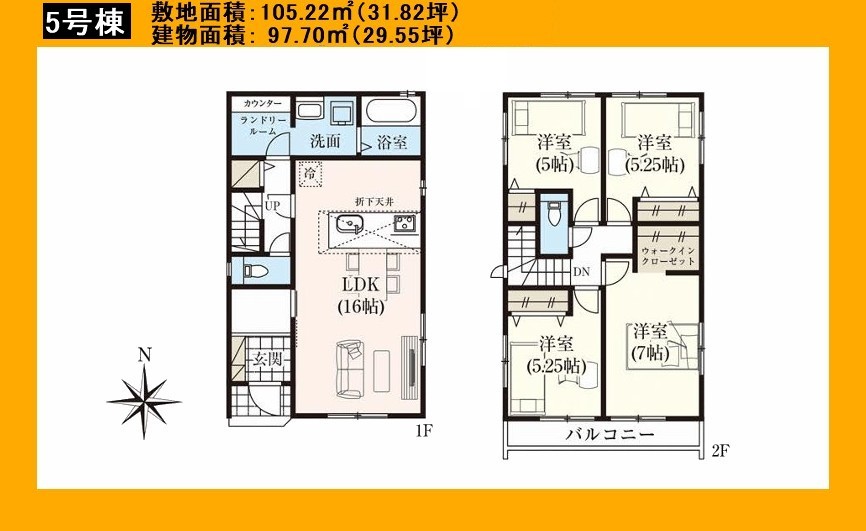 | 間取 | 4LDK (LDK16帖、洋室7帖、洋室5.25帖、洋室5.25帖、洋室5帖) | ||