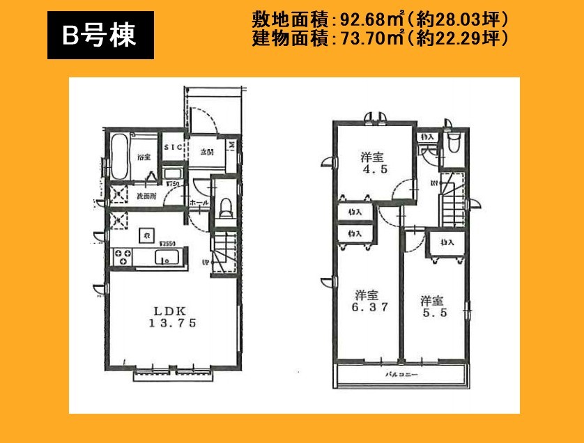 | 間取 | 3LDK~3LDK (LDK13.75帖、洋室4.5帖、洋室6.37帖、洋室5.5帖) | ||